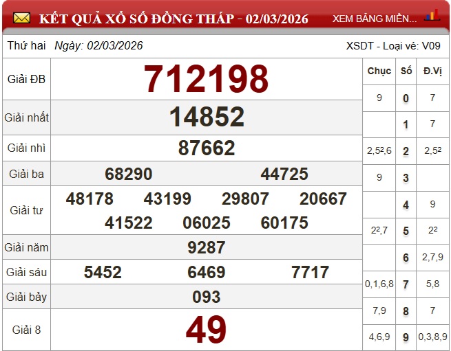 Trực tiếp Kết quả xổ số Đồng Tháp hôm nay - Kết quả XSDT 9/3 - XSDT hôm nay Thứ Hai ngày 9/3/2026