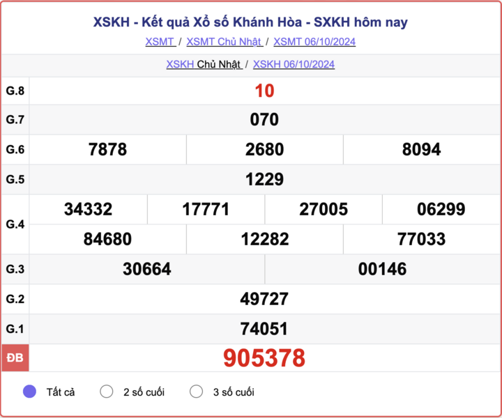 XSKH 6/10, kết quả xổ số Khánh Hòa hôm nay 6/10/2024.