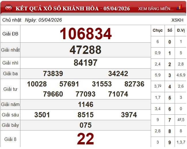 Kết quả xổ số Khánh Hòa ngày 5/4/2026