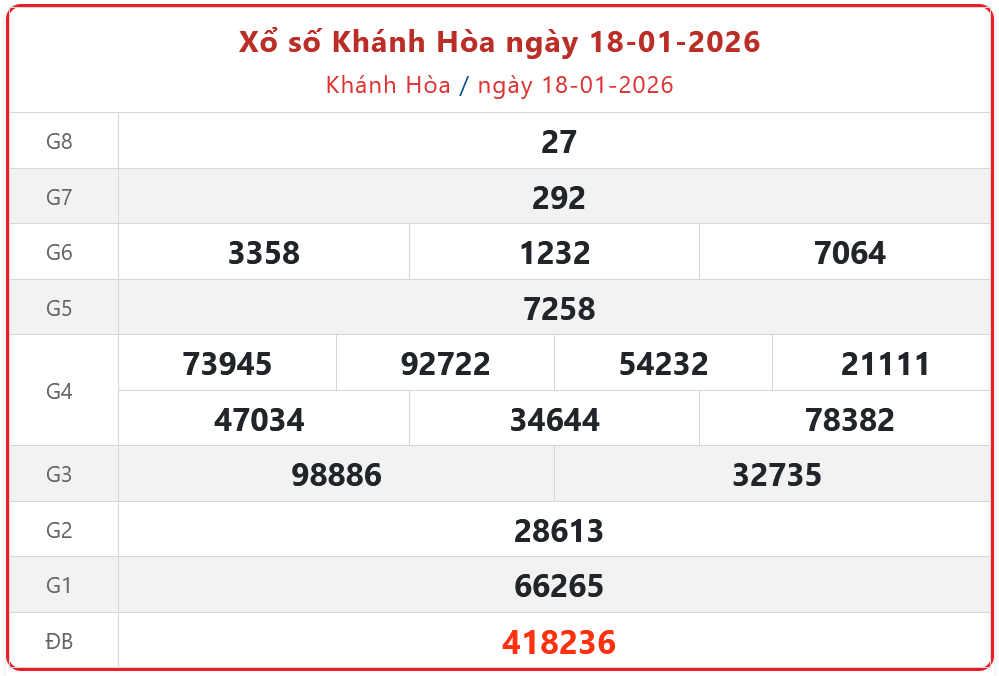 Theo dõi kết quả xổ số Khánh Hòa hôm nay 18/1/2026 để cập nhật kết quả nhanh và chính xác nhất