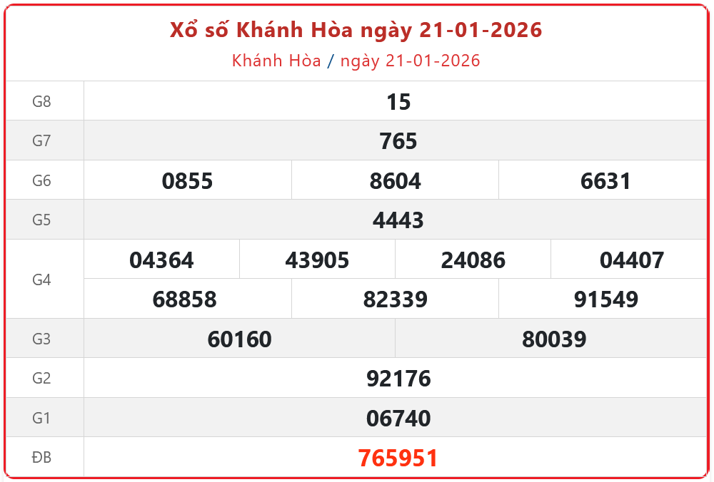 Theo dõi kết quả xổ số Khánh Hòa hôm nay 21/1/2026 để cập nhật kết quả nhanh và chính xác nhất