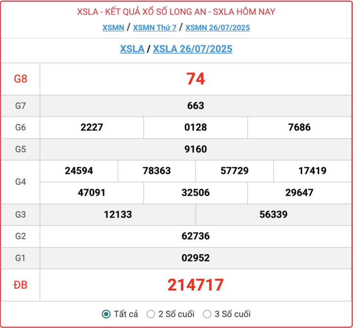 Trực tiếp Kết quả xổ số Long An hôm nay - Kết quả XSLA 16/8 - XSLA hôm nay Thứ Bảy ngày 16/8/2025