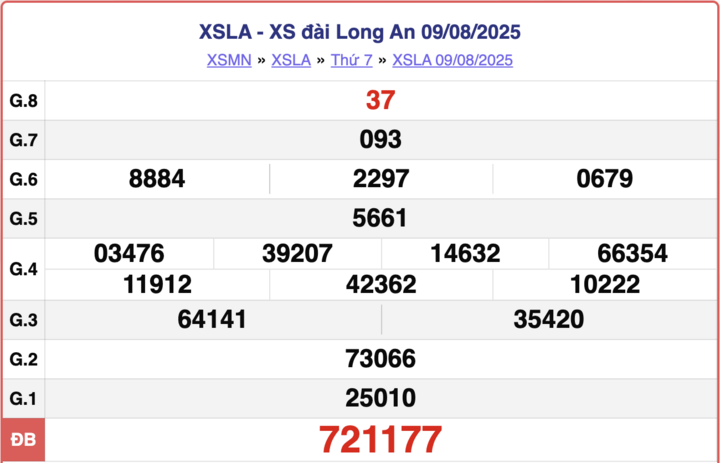 XSLA 16/8. Kết quả xổ số hôm nay ngày 16/8. XSLA Thứ Bảy. Trực tiếp KQXSLA ngày 16/8. Kết quả xổ số Long An hôm nay ngày 16/8/2025.