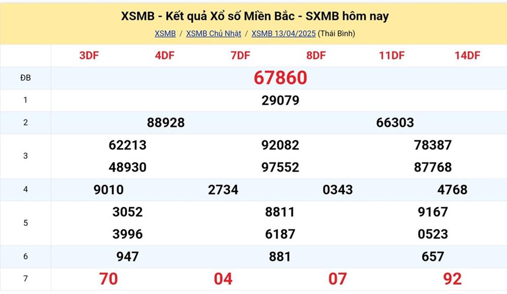 XSMB 13/4, kết quả xổ số miền Bắc ngày 13/4/2025.