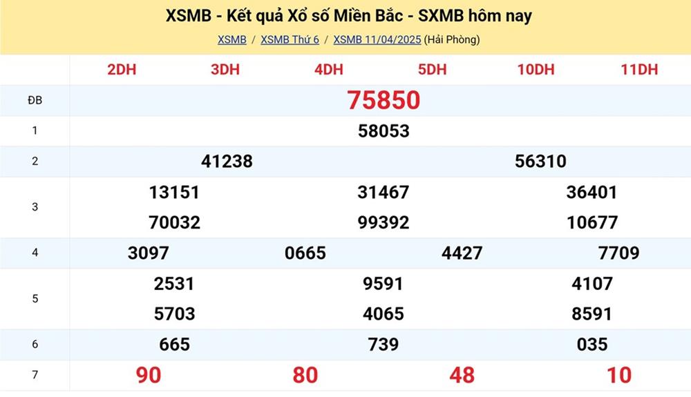 XSMB 12/4, kết quả xổ số miền Bắc ngày 12/4/2025.
