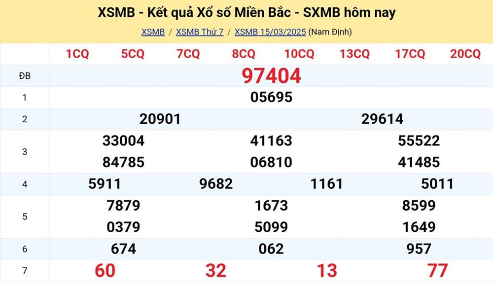 XSMB 22/3, Kết quả xổ số hôm nay ngày 22/3. XSMB thứ Bảy. Trực tiếp KQXSMB ngày 22/3. Kết quả xổ số miền Bắc hôm nay thứ Bảy ngày 22/3/2025.