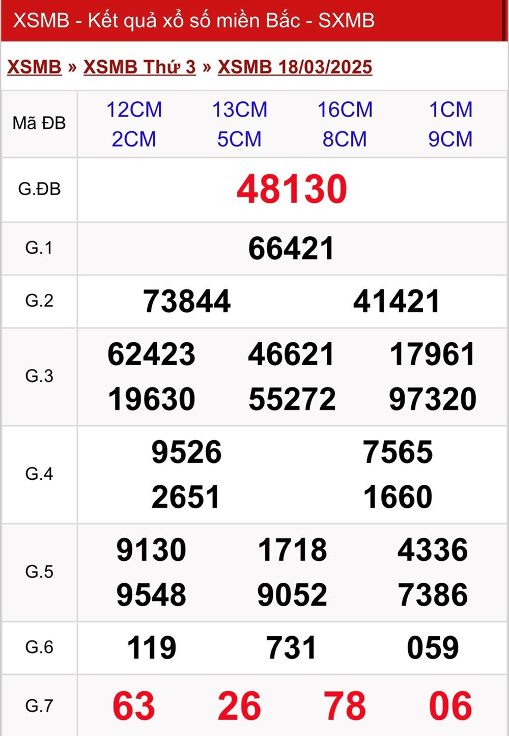 XSMB 18/3, kết quả xổ số miền Bắc ngày 18/3/2025.