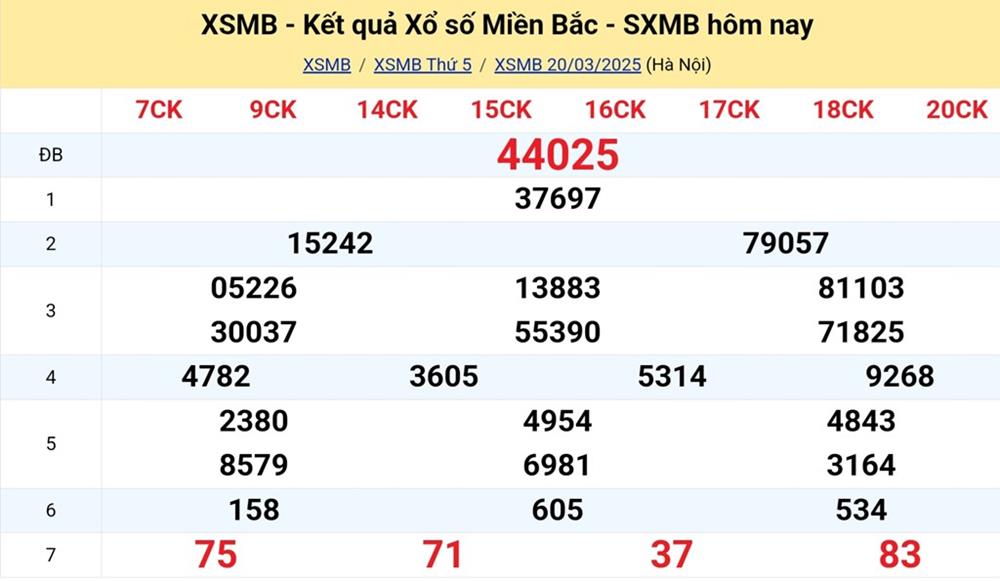XSMB 23/3, kết quả xổ số miền Bắc ngày 23/3/2025.