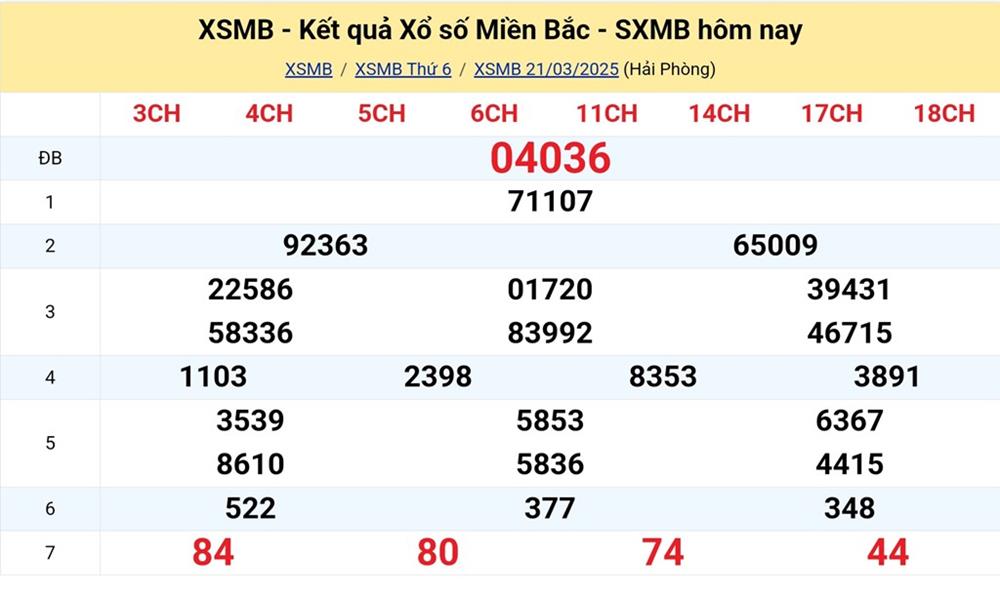 XSMB 21/3, kết quả xổ số miền Bắc ngày 21/3/2025.