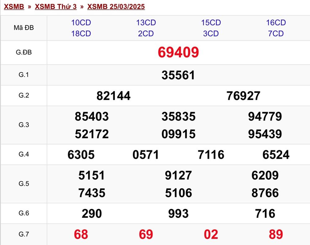 XSMB 25/3/2025