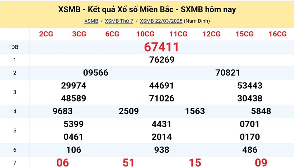 XSMB 22/3/2025