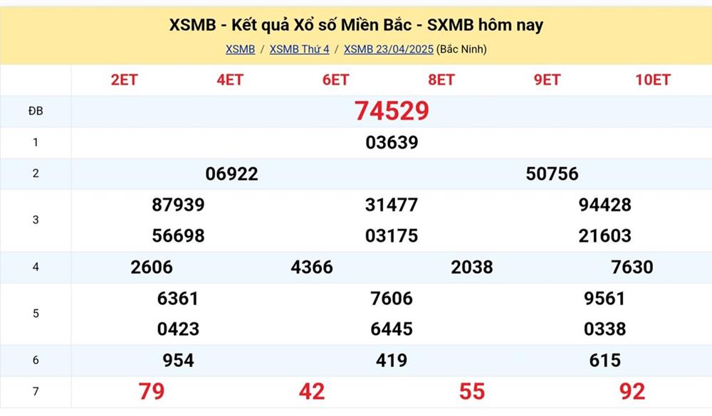 XSMB 23/4, kết quả xổ số miền Bắc ngày 23/4/2025