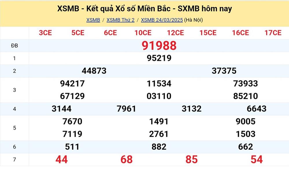 XSMB 25/3, kết quả xổ số miền Bắc ngày 25/3/2025.