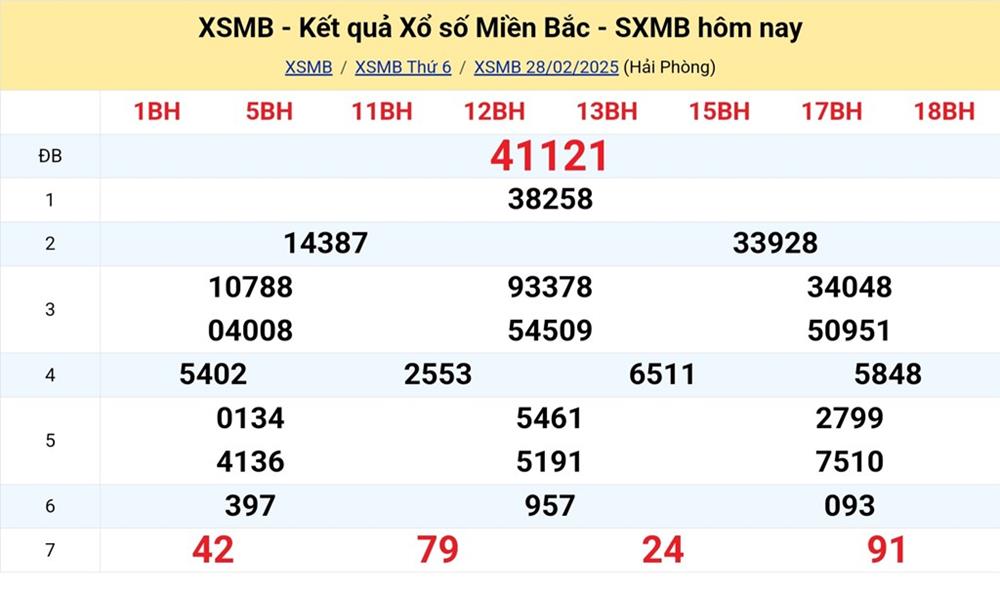 XSMB 27/2, kết quả xổ số miền Bắc ngày 27/2/2025.