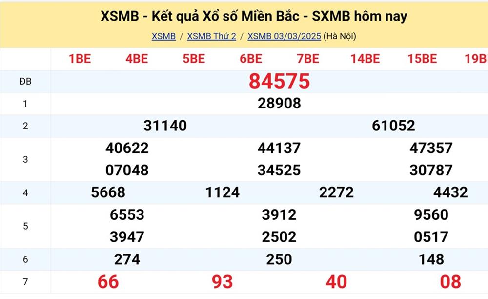 XSMB 3/3/2025