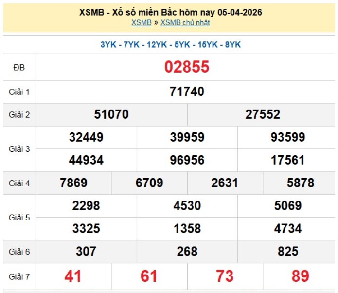 Kết quả Xổ số miền Bắc ngày 5/4/2026