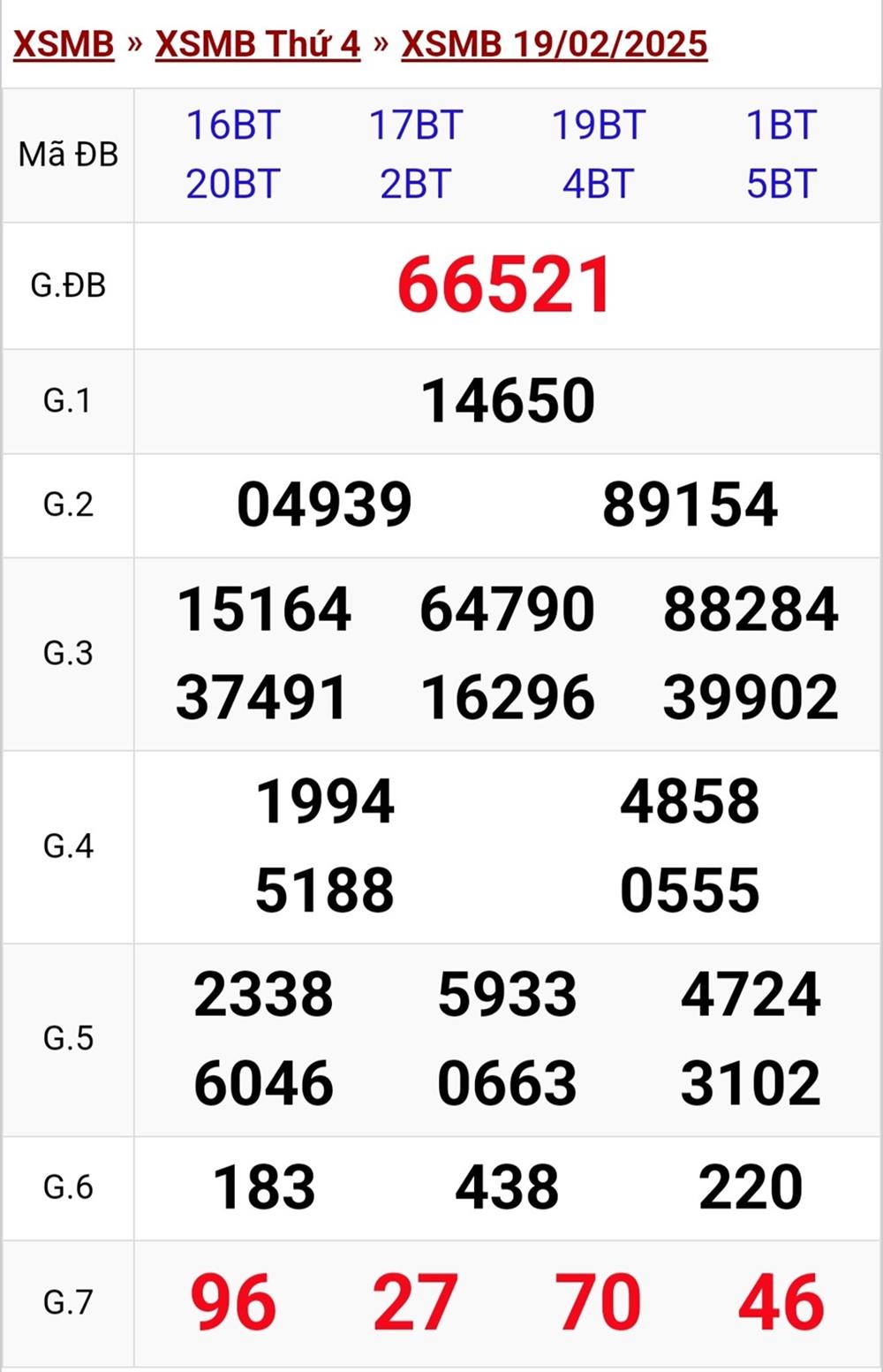 XSMB 19/2/2025
