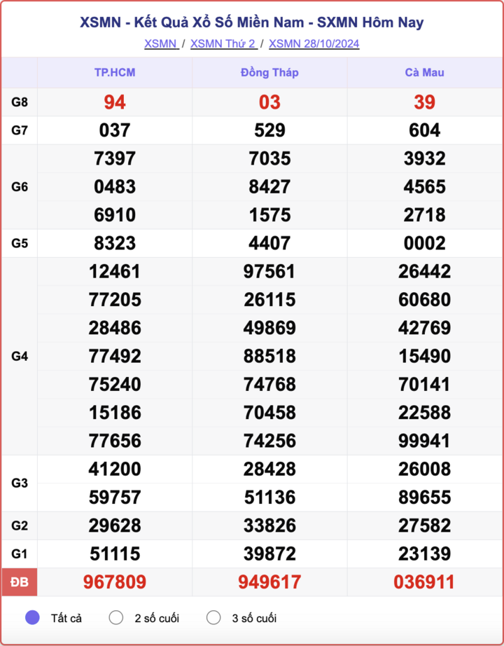 XSMN 28/10, kết quả xổ số miền Nam hôm nay 28/10/2024.