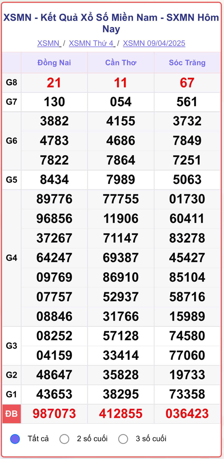 XSMN 10/4, kết quả xổ số miền Nam ngày 10/4/2025