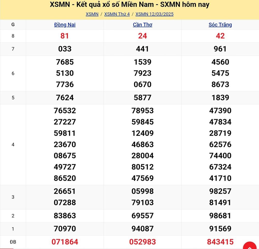 XSMN 13/3, kết quả xổ số miền Nam ngày 13/3/2025.
