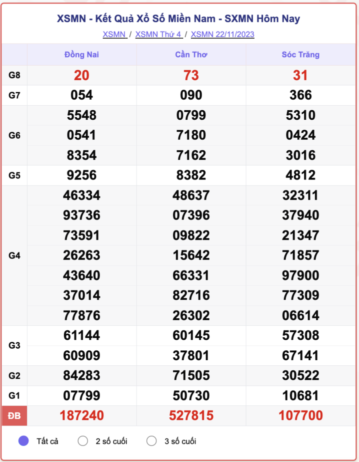 - Kết quả XSMN ngày 22/11/2023