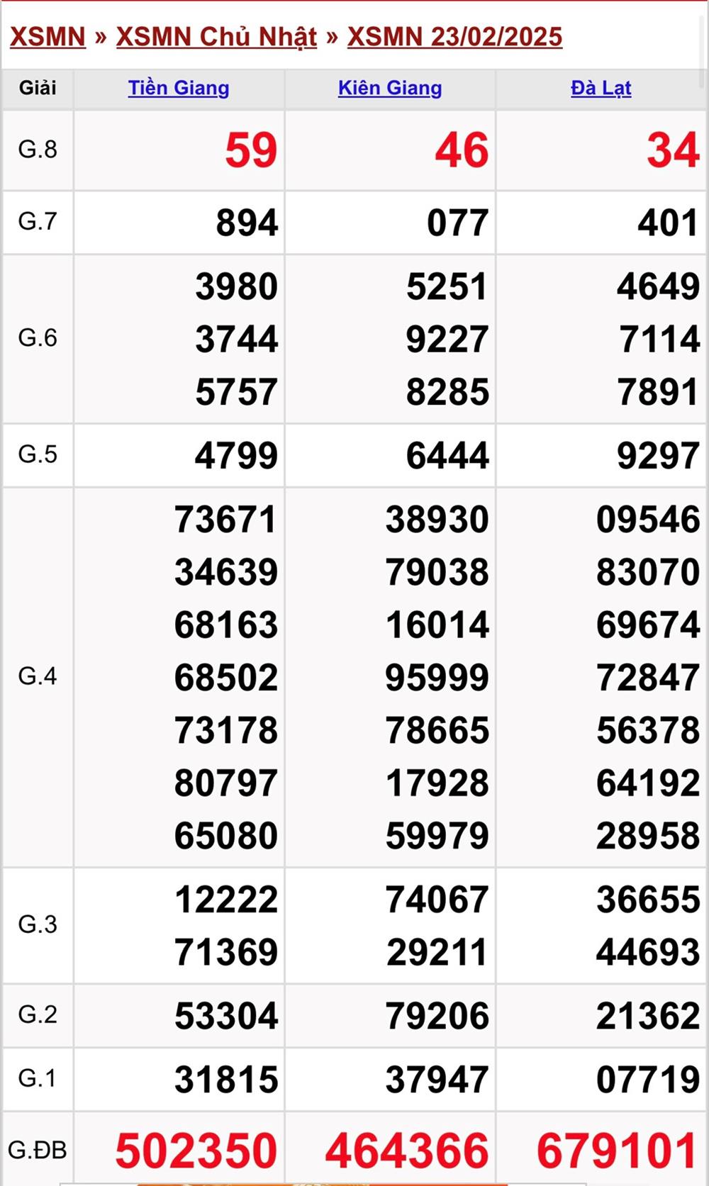 - Chủ nhật hàng tuần xổ số miền Nam được mở thưởng tại Kiên Giang, Tiền Giang, Đà Lạt
