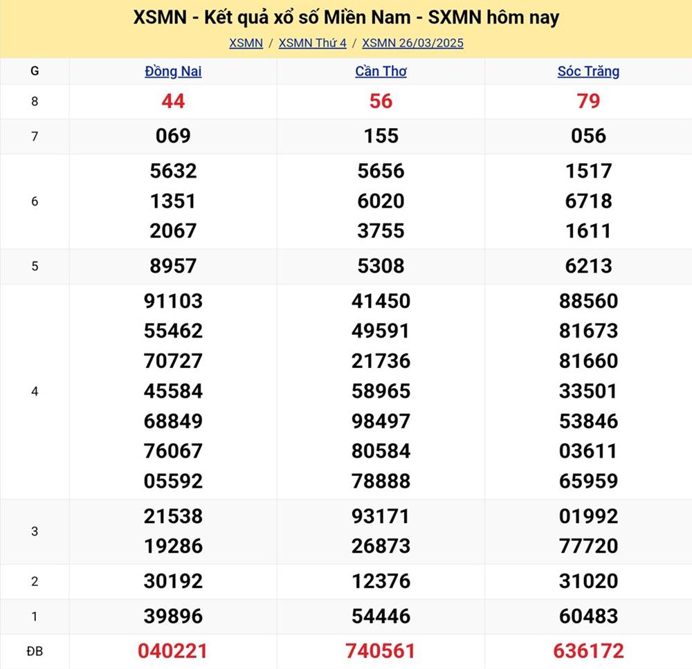 XSMN 26/3, kết quả xổ số miền Nam ngày 26/3/2025.