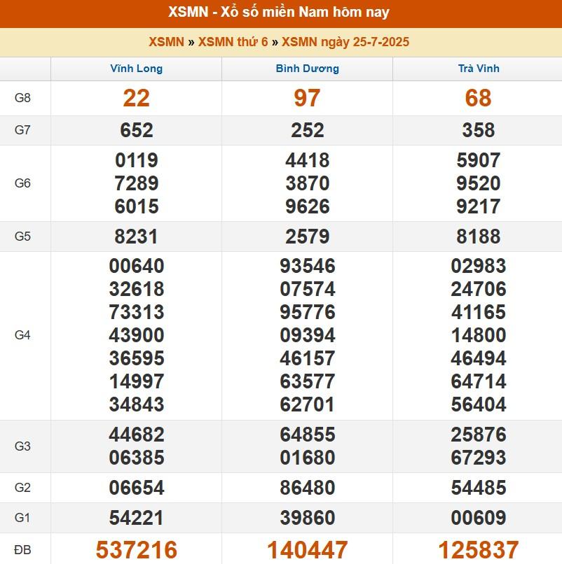 XSMN 25/7/2025. Xem lại KQXSMN ngày 25/7/2025