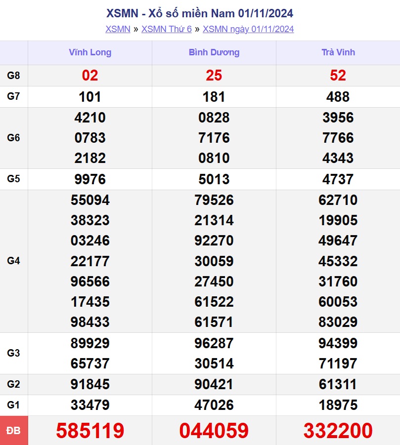 - Thứ 6 hàng tuần xổ số miền Nam được quay thưởng tại Trà Vinh, Bình Dương, Vĩnh Long.