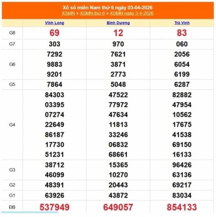 Kết quả xổ số miền Nam ngày 3/4/2026