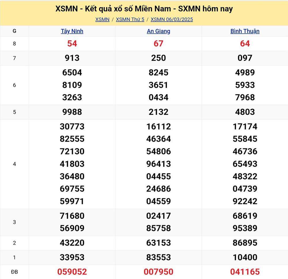 - Thứ 5 hàng tuần xổ số miền Nam được quay thưởng tại An Giang, Bình Thuận, Tây Ninh.