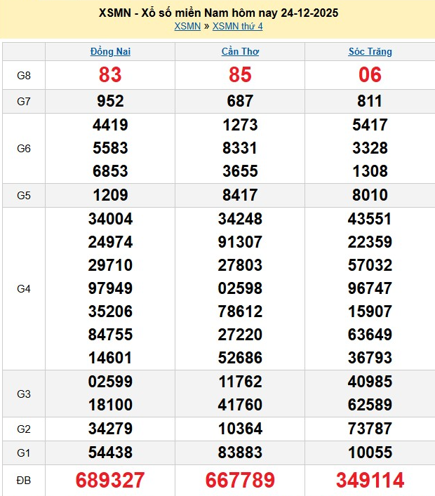 Kết quả xổ số miền Nam ngày 24/12/2025