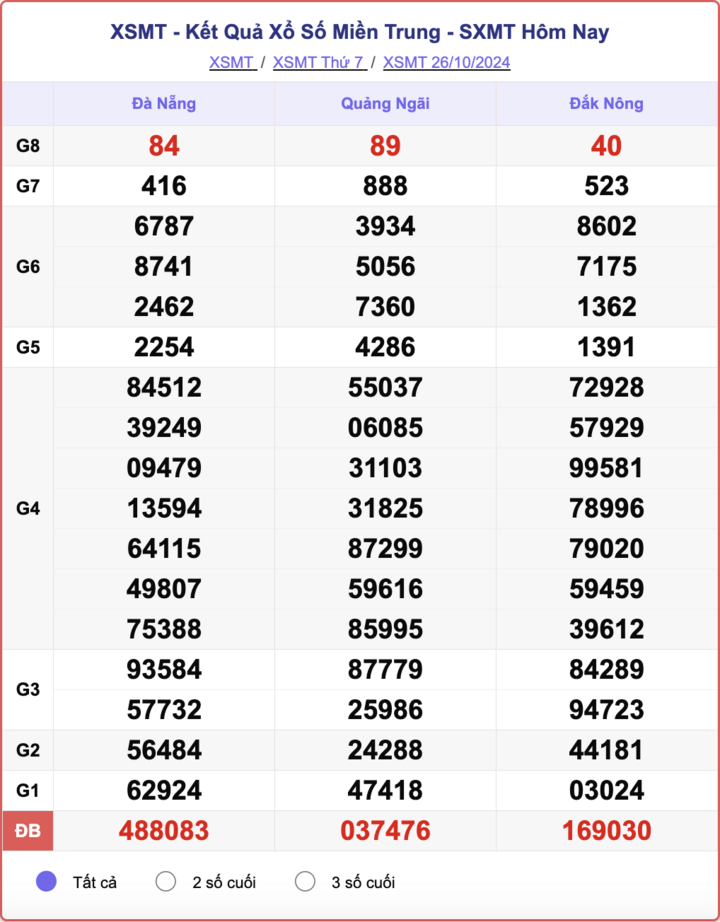 XSMT 26/10, kết quả xổ số miền Trung hôm nay 26/10/2024.
