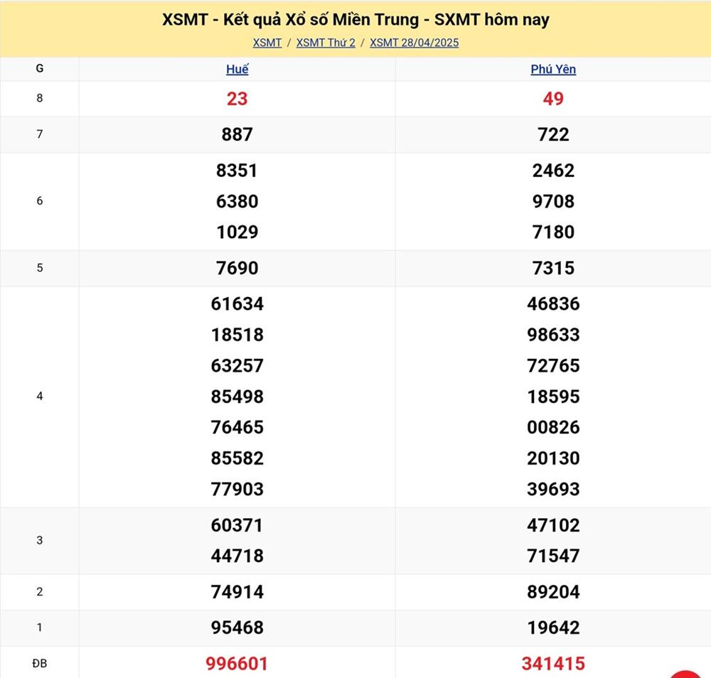 XSMT 28/4, kết quả xổ số miền Trung (KQXSMT) ngày 28/4/2025.