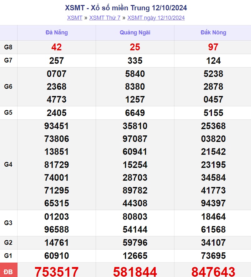 XSMT 12/10, kết quả xổ số miền Trung hôm nay 12/10/2024.