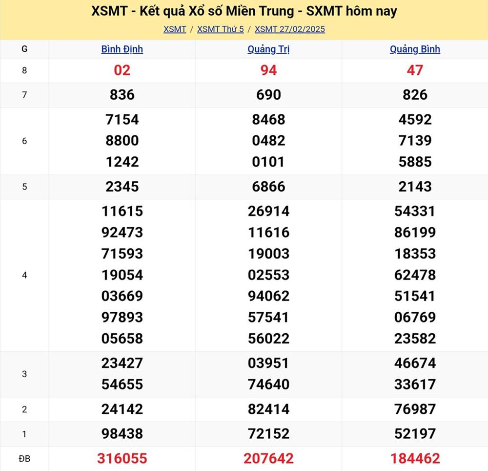 XSMT 27/2, kết quả xổ số miền Trung ngày 27/2/2025.