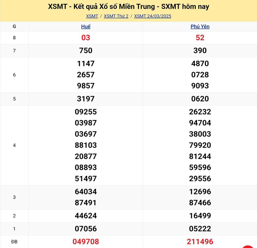 XSMT 24/3, kết quả xổ số miền Trung ngày 24/3/2025.