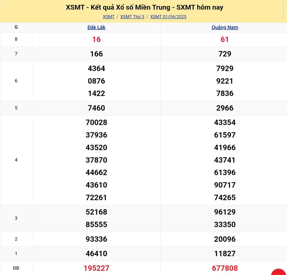 Kết quả xổ số miền Trung ngày 6/4/2025 - KQXSMT 6/4