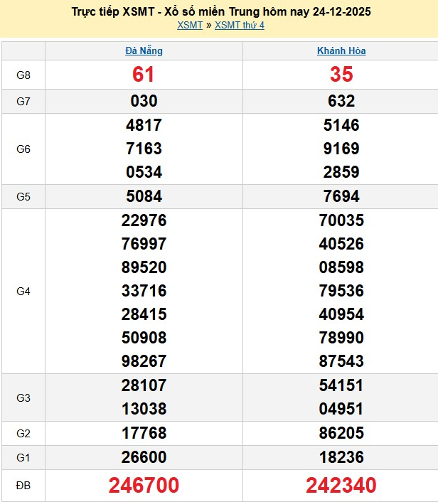 Kết quả xổ số miền Trung ngày 24/12/2025