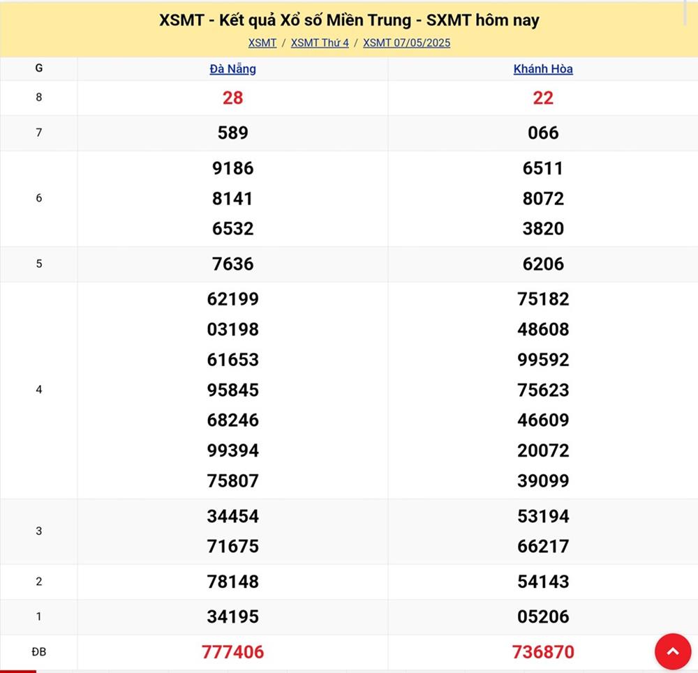 XSMT 7/5, kết quả xổ số miền Trung (KQXSMT) ngày 7/5/2025.