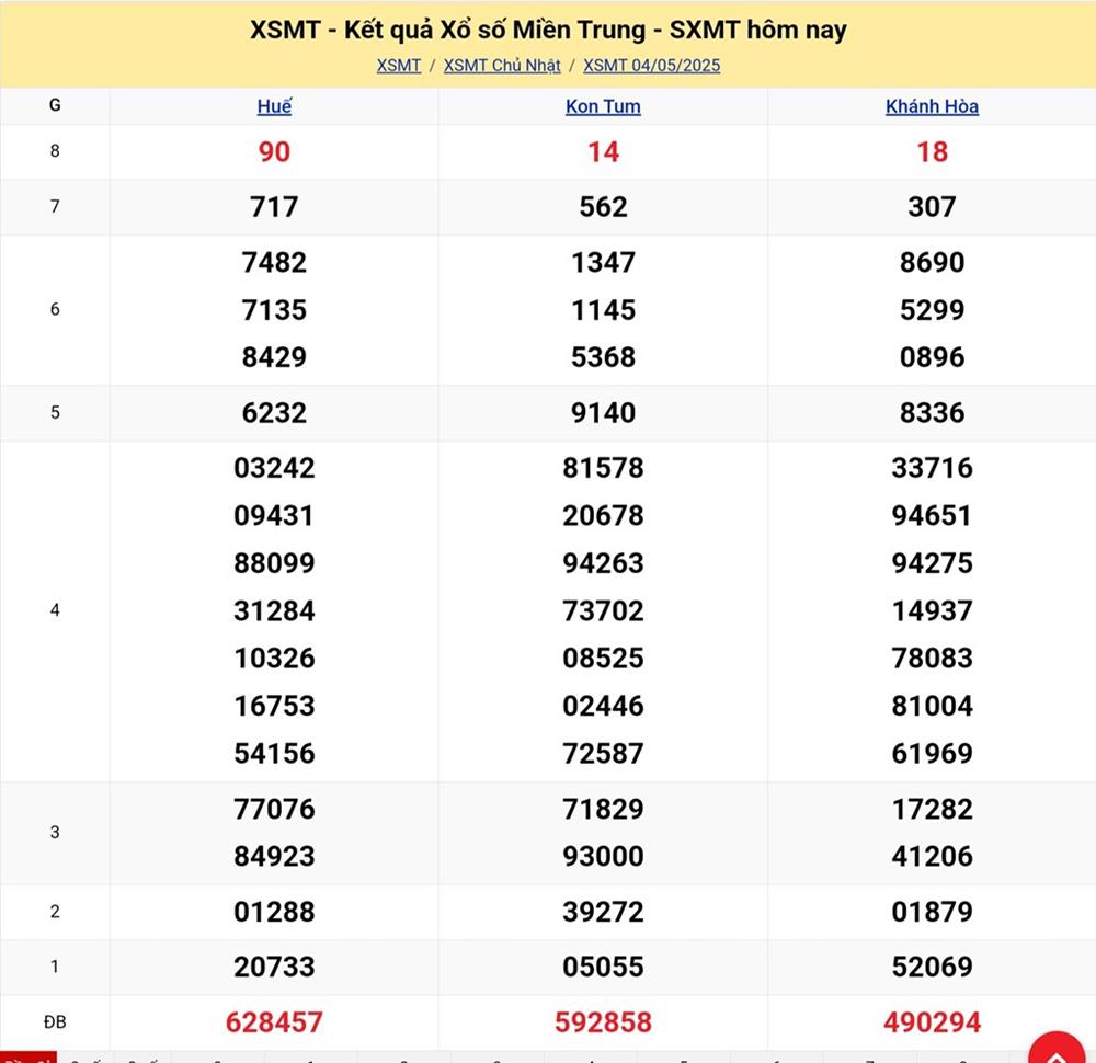 XSMT 4/5, kết quả xổ số miền Trung (KQXSMT) ngày 4/5/2025.