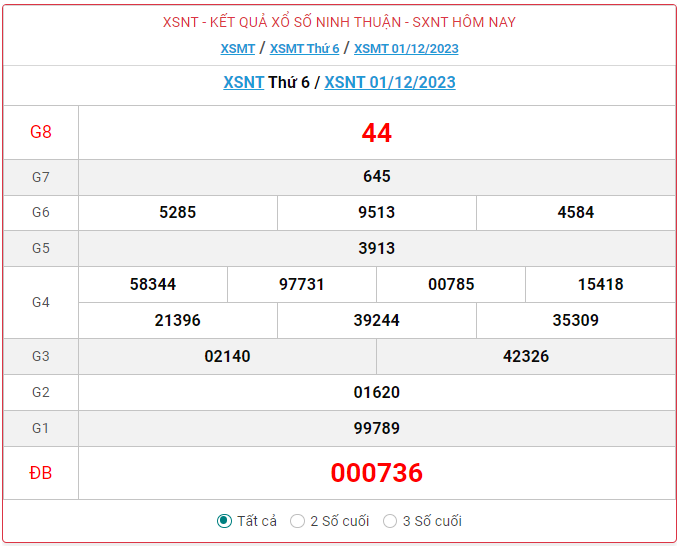 XSNT thứ 6, kết quả xổ số Ninh Thuận ngày 1/12/2023