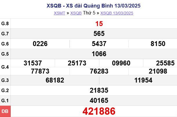 Xem lại Kết quả xổ số Quảng Bình Thứ Năm ngày 13/03/2025