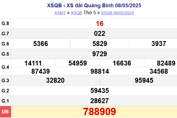 XSQB 8/5, kết quả xổ số Quảng Bình hôm nay 8/5/2025.
