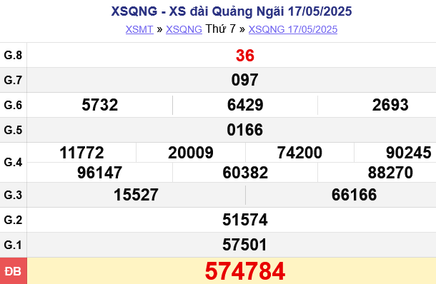 XSQNG 17/5, kết quả xổ số Quảng Ngãi hôm nay 17/5/2025.