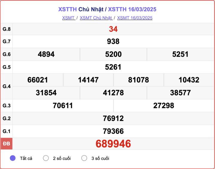 XSTTH 16/3, kết quả xổ số Huế ngày 16/3/2025.