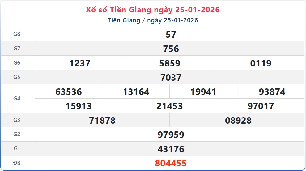 Kết quả xổ số Tiền Giang chủ nhật ngày 25/1/2026