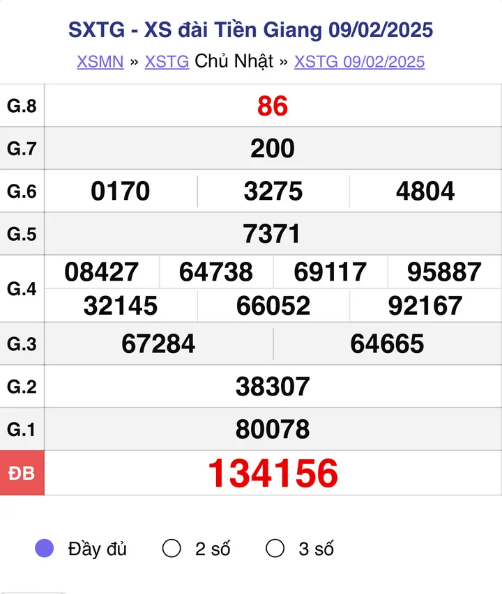 Trực tiếp Kết quả xổ số Tiền Giang hôm nay - Kết quả XSTG 16/3 - XSTG hôm nay Chủ nhật ngày 16/3/2025.