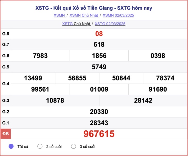 Trực tiếp Kết quả xổ số Tiền Giang hôm nay - Kết quả XSTG 23/3 - XSTG hôm nay Chủ nhật ngày 23/3/2025