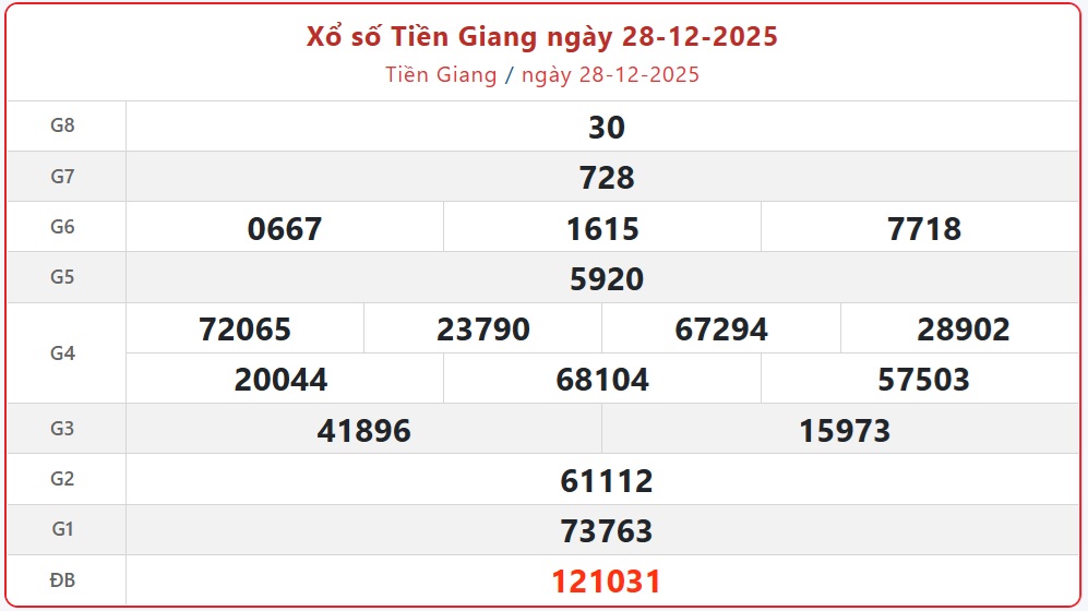 Kết quả xổ số Tiền Giang ngày 28/12/2025